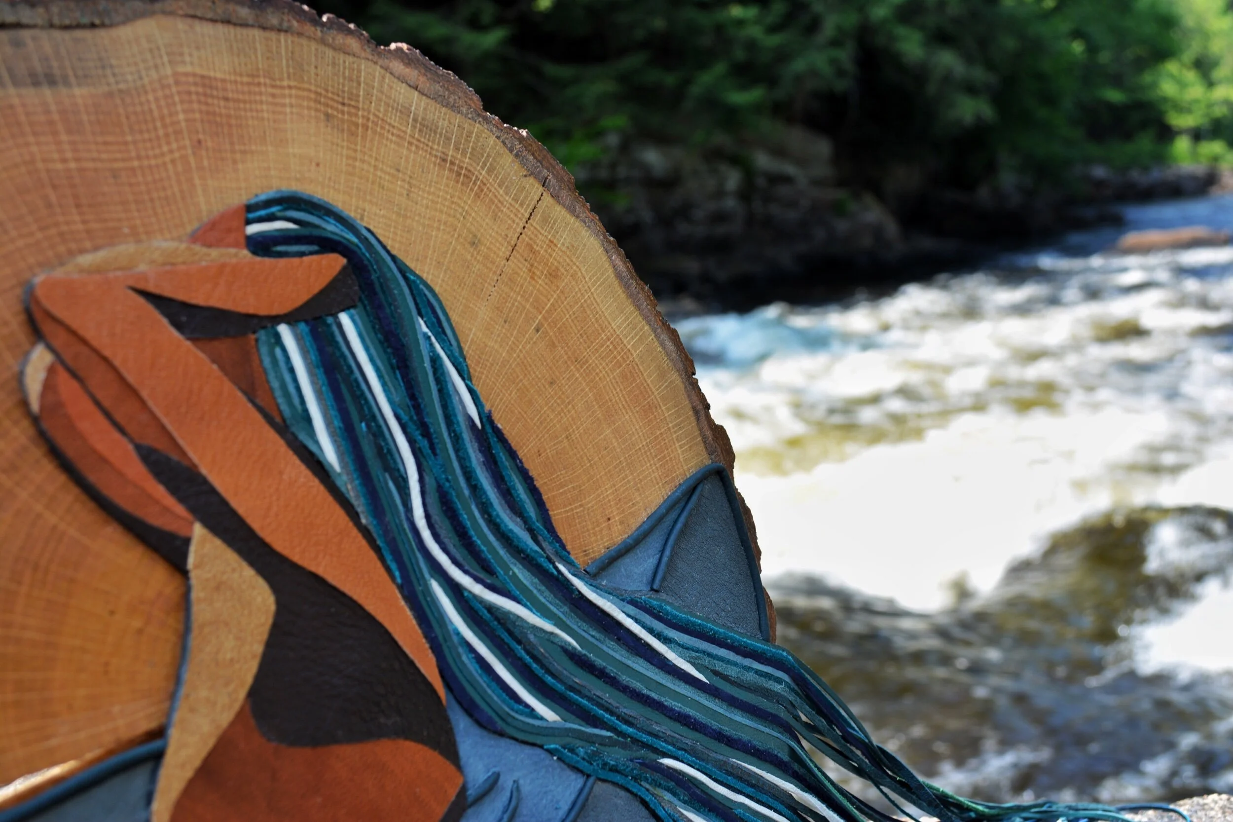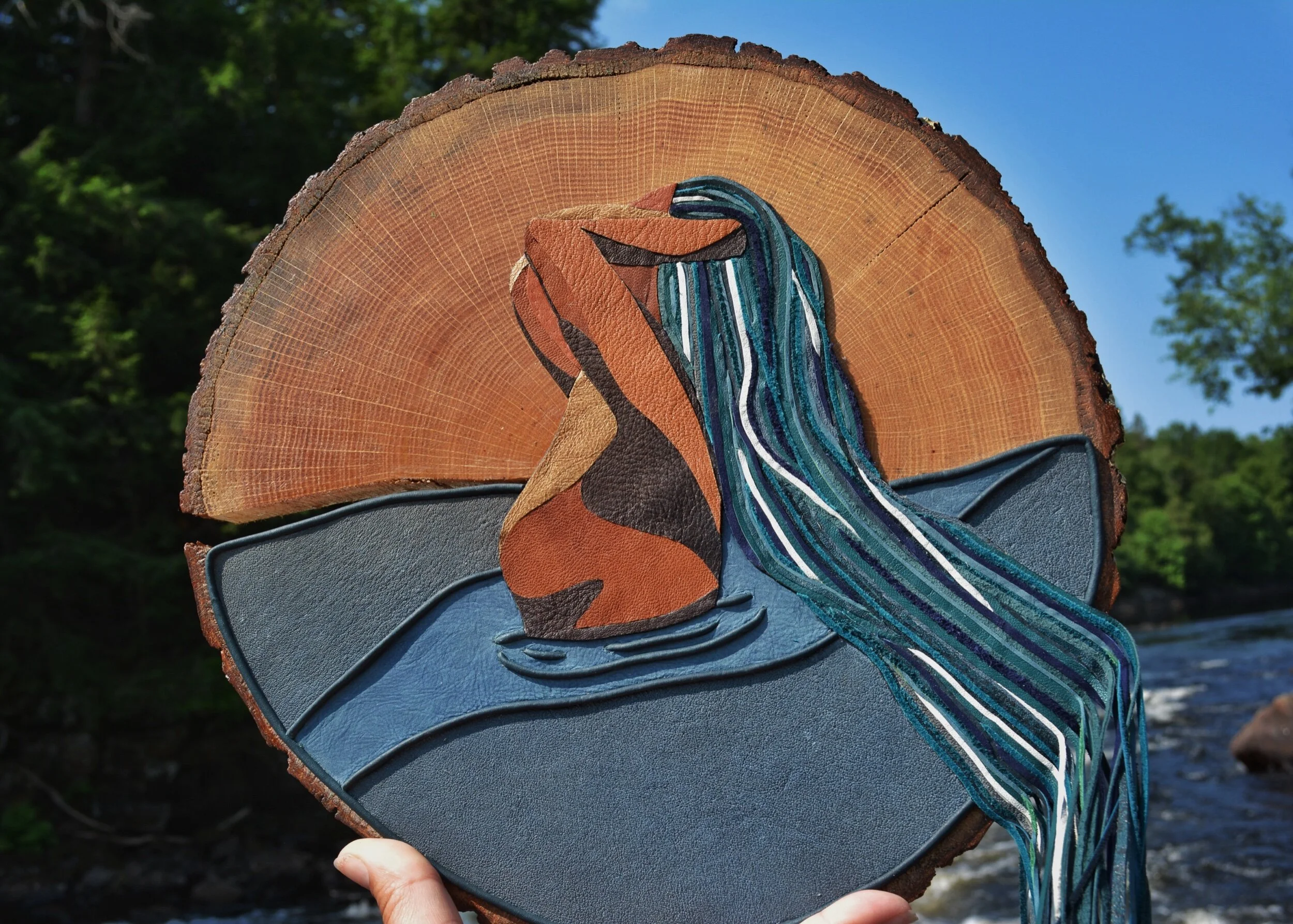 11'“x10” this piece is mounted on an Ash wood round, and has two sawtooth brackets for hanging.