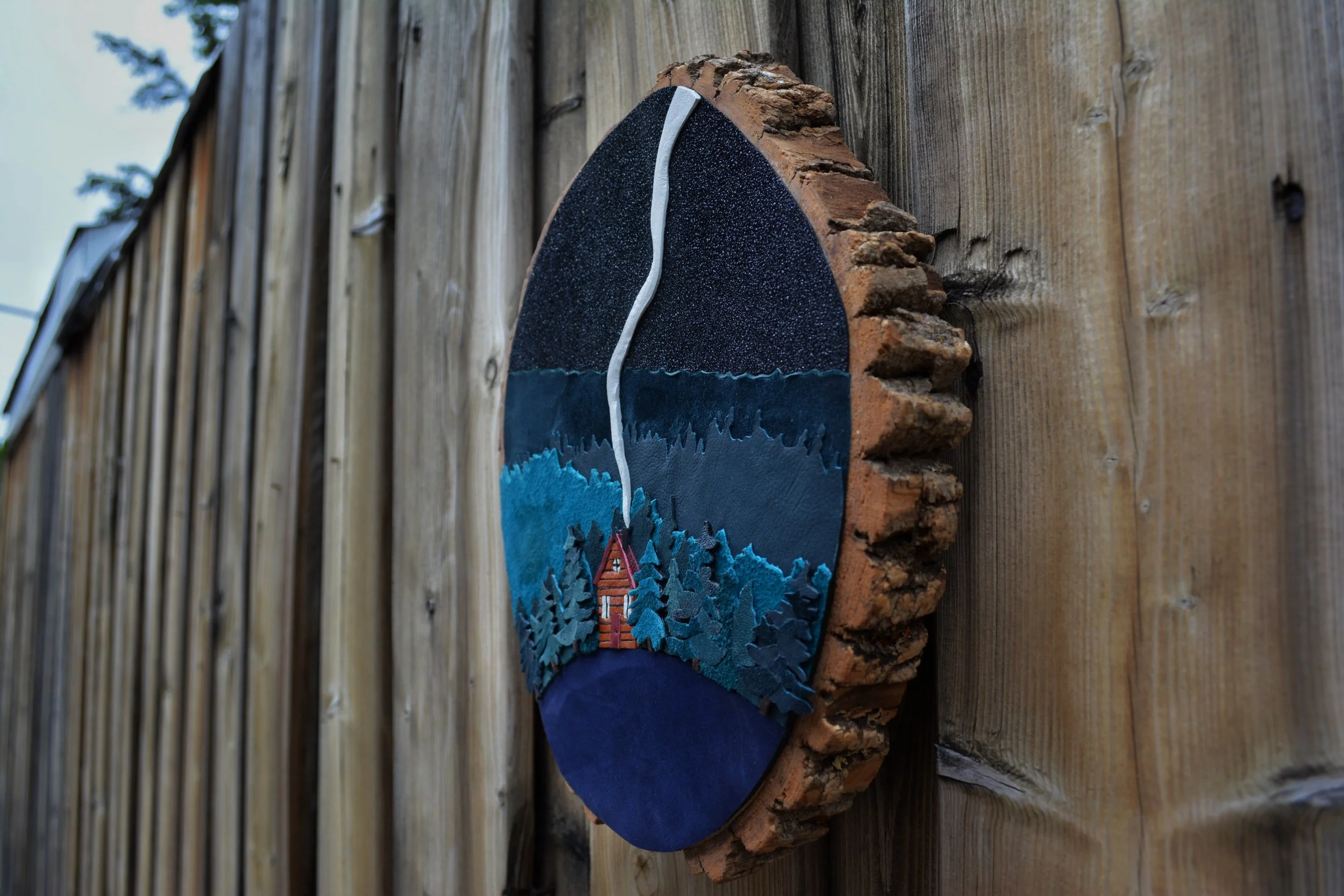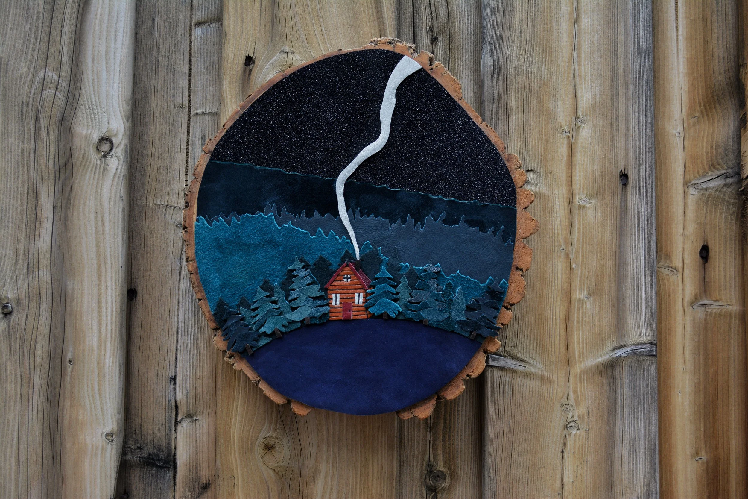 Store › Cozy Nights Cozy Nights $375.00 sold out 10'“x9.5” this piece is mounted on an Ash wood round, and has two sawtooth brackets for hanging. 10'“x9.5” this piece is mounted on an Ash wood round, and has two sawtooth brackets for hanging. Sold Out Added!